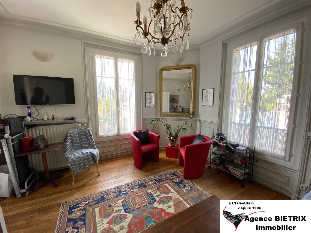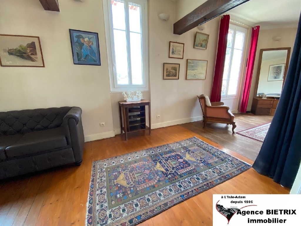 L'Isle-Adam: A été vendu en 2021, à 5 min du marché et des commerces, hyper centre, maison bourgeoise lumineuse au calme, comp: entrée, cuisine équipée coin repas, un séjour, une salle d'eau wc, à l'étage palier, un salon, une chambre, à l'étage palier 2 chambres, dressing, salle de bains wc, sous-sol total, chauffage gaz, jardin clos de murs de 448 m². Exclusivité.