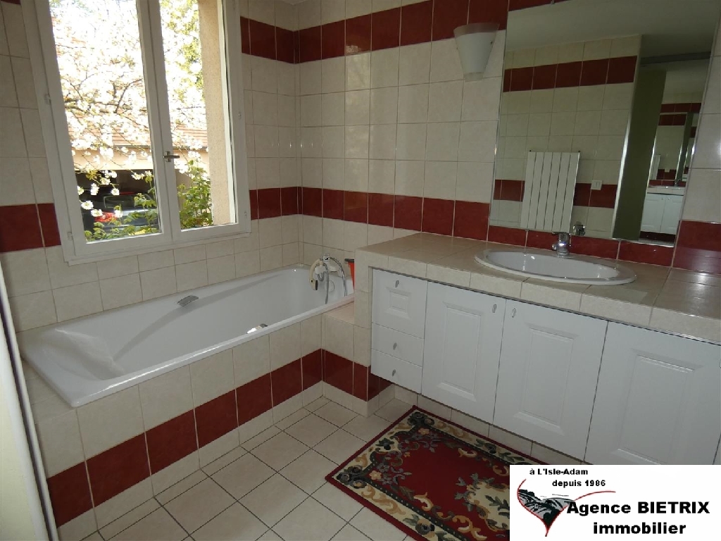 l'Isle-Adam: EXCLUSIVITE Belle construction traditionnelle, prestations de qualité .. tuiles plates , marbre au sol comp: une entrée, une cuisine équipée, un séjour salon de 50 m2 avec cheminée, une chambre, wc, une salle de bains aménagée, un dressing, à l'étage mezzanine bureau, 2 chambres, une salle de bains, une chambre avec sa salle de douches, un wc, sous-sol total avec cave, chaufferie, buanderie, atelier, chauffage central au gaz par radiateurs, un garage indépendant pour 2 voitures, jardin clos de 887 m² environ. A été vendu by BIETRIX immobilier en 2019.