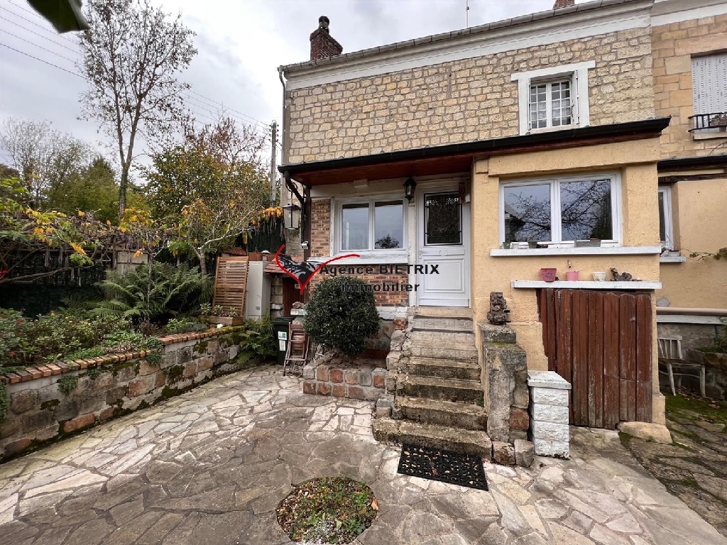 Parmain: a été vendu en 2023 ! maison de ville en pierre des années 1880, en bon état, lumineuse compr: entrée véranda, cuisine équipée, séjour, SB wc, à l'étage 2 chambres, wc, étage une grande chambre , wc, une cave, chauf pompe à chaleur 2 ans, appentis et grand garage pour 2 voitures, jardin clos et terrasse de 373 m².
