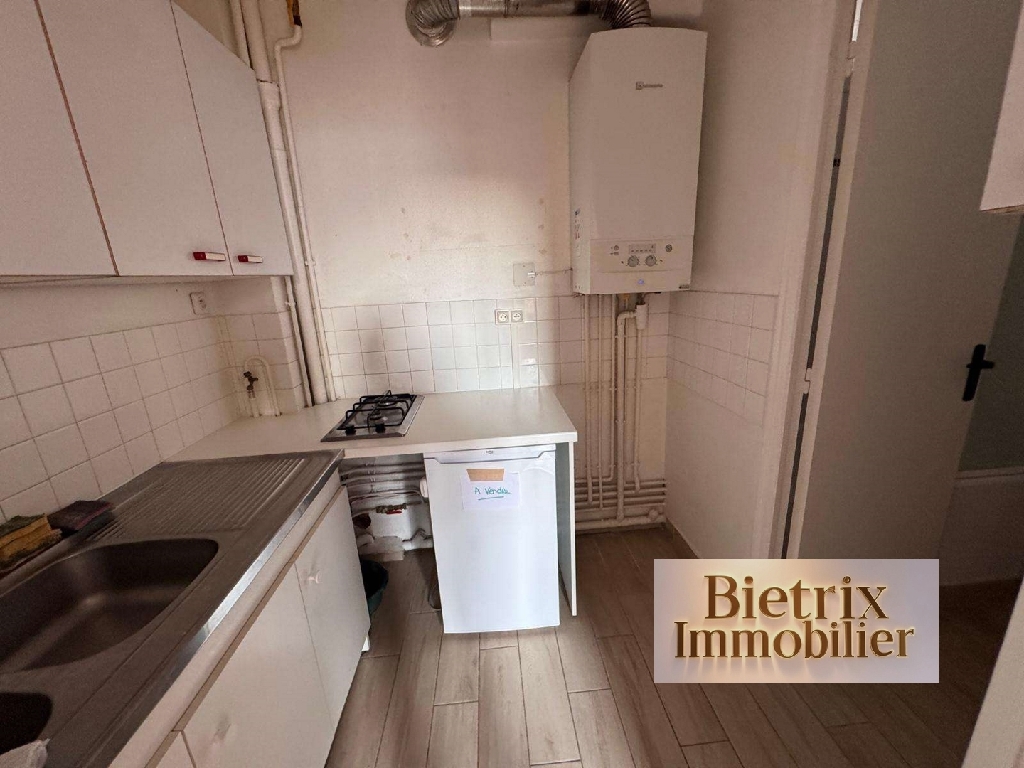 l'Isle-Adam: hyper centre ville, grande rue, charmant petit F2 en bon état comprenant entrée, cuisine ouverte sur séjour, chambre, salle de bains, wc, chauffage individuel au gaz. A 3 min de la gare à pied ( pas de cave et pas de parking). apt fibré...