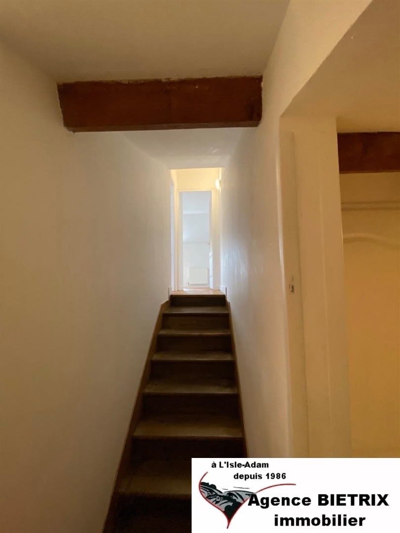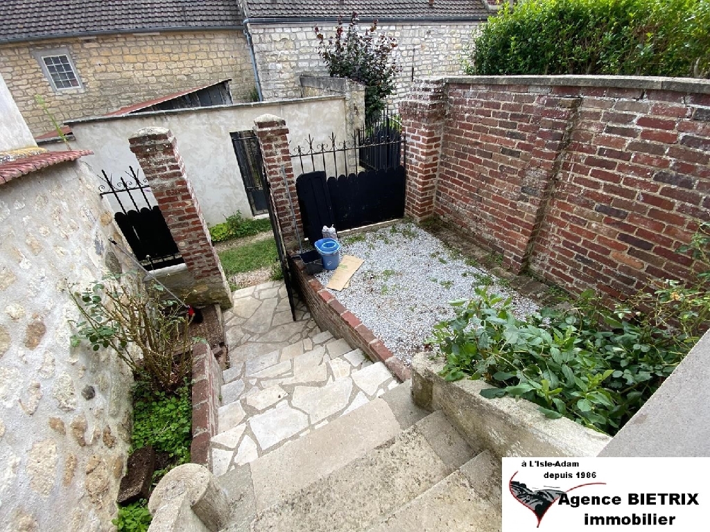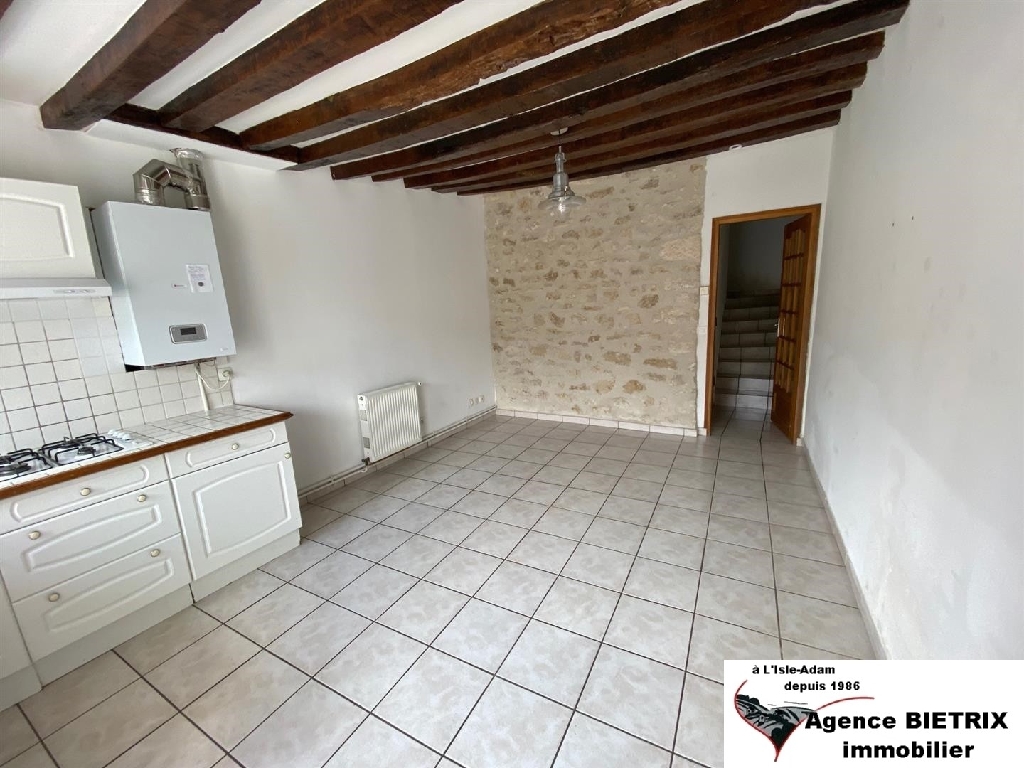 Parmain: trop tard déja loué, hameau de Jouy le Comte, maison rurale en pierre de 3 pièces 58 m² utile comprenant cuisine américaine aménagée avec séjour. A mi étage, un petit salon, SB, wc. à l'étage, chambre et petit bureau, cave, jardinet 20 m² et en plus un garage jardinet indépendant 70 m², chauffage individuel gaz.