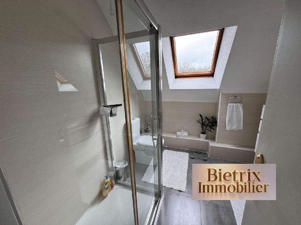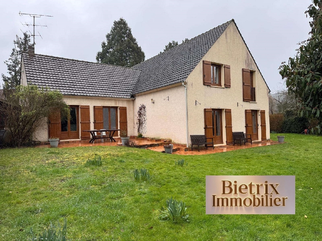 A 5 min de Nesles-la-Vallée: grande maison traditionnelle, au calme sans vis à vis, beau volume compr: Une entrée (placard), une cuisine équipée, une arrière cuisine, une salle à manger, un salon cathédrale avec cheminée, un wc, un placard, à l'étage palier desservant 4 belles chambres, une salle de bains douche wc, une salle d'eau wc, un placard, un garage attenant, jardin de 1900 m² environ.