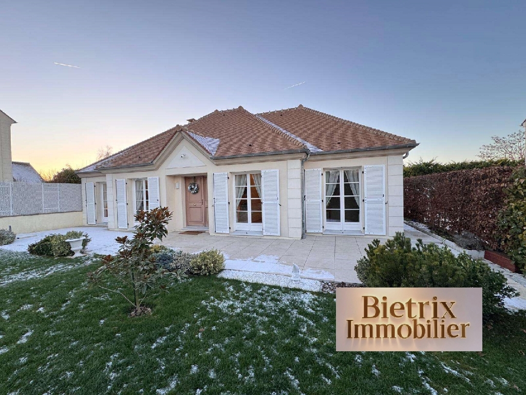 l'Isle-Adam: au calme maison individuelle en excellent état, récente et soignée de plain-pied comp: Une entrée, un séjour salon, une cuisine équipée, un cellier, 3 chambres, dressing, salle de bains douche avec wc, un wc, chauffage par convecteurs électrique, 2 places de parking extérieures, jardin clos de 535 m² avec robot tonte et arrosage automatique.