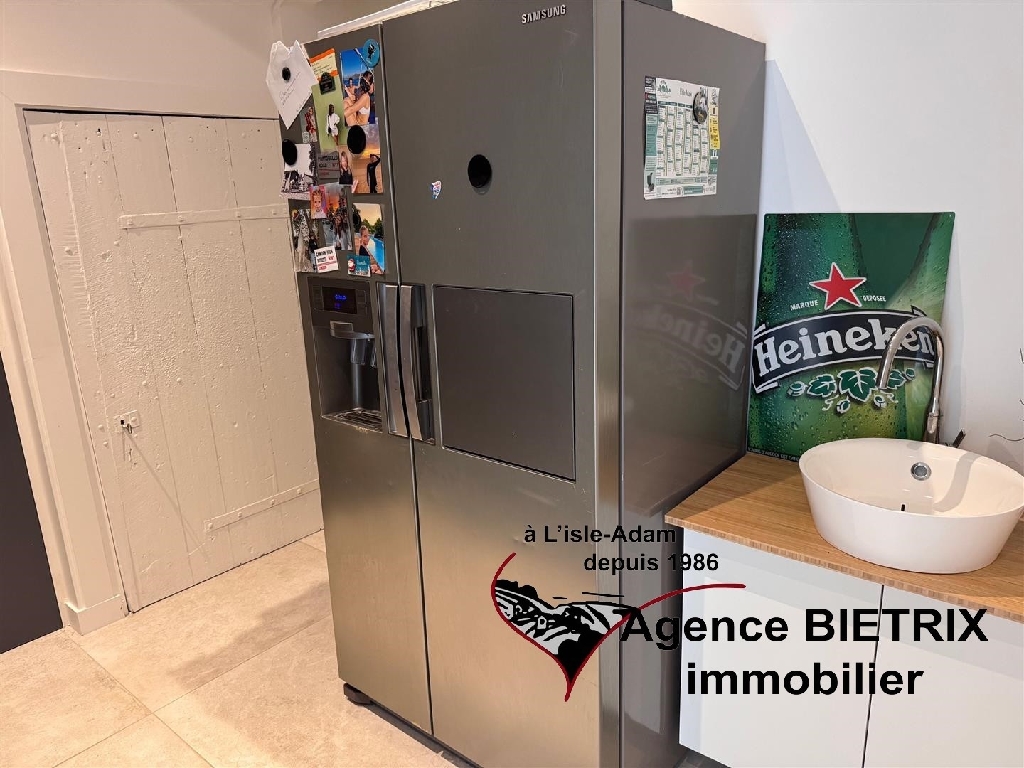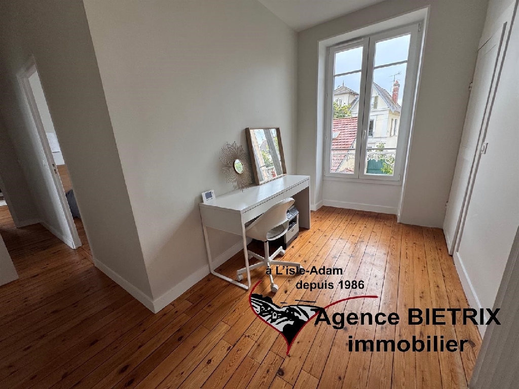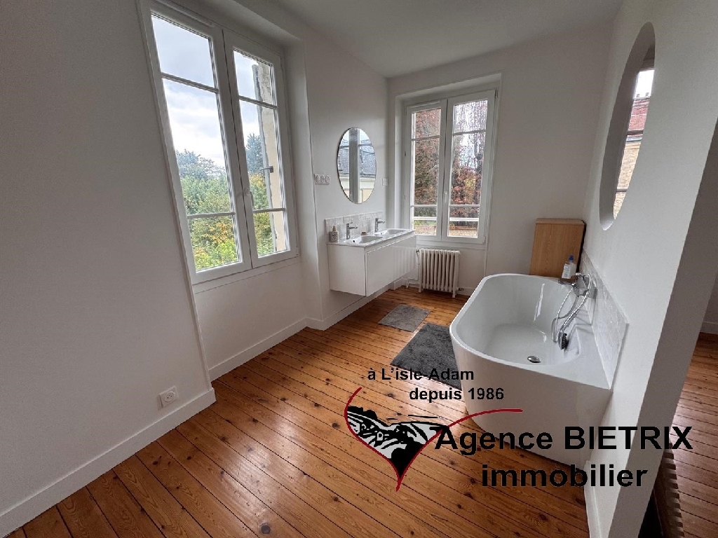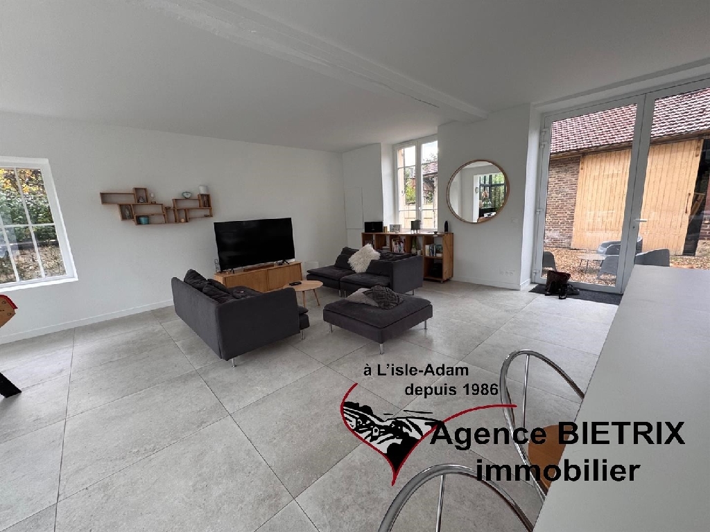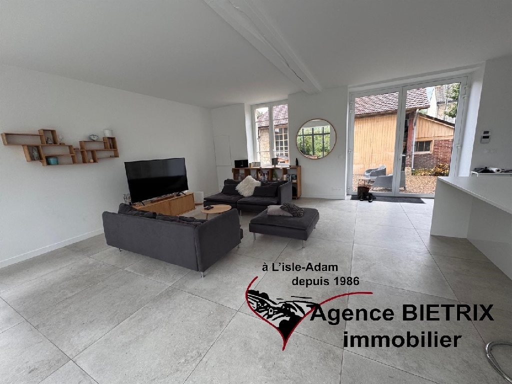 l'Isle-Adam: notre cadre de vie est exceptionnel en étant en région parisienne, au centre ville, au calme, maison en pierre lumineuse du début 1900 et surtout l'intérieur est restauré, les baies vitrées et verrière donne un petit côté moderne comprenant : Une entrée, une cuisine américaine équipée donnant sur un grand séjour triple avec un verrière et terrasse, un wc, une arrière cuisine, à l'étage palier desservant 3 chambres, une salle d'eau avec wc, une salle de bains et dressing, à l'étage 2 chambres, une salle d'eau avec wc, une cave voutée, un grand garage indépendant 30 m² avec abri de jardin, terrain de 780 m² environ.