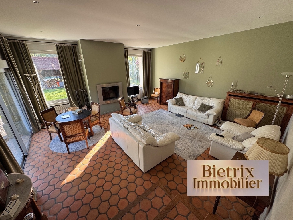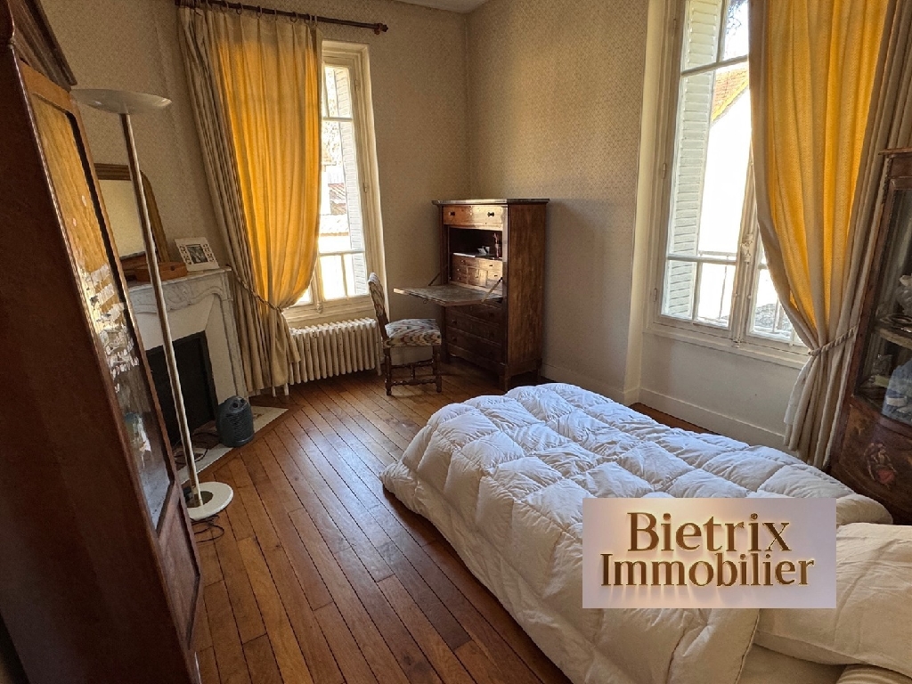 Valmondois: centre ville, corp de ferme en pierre beau volume 260 m² utile, grand séjour cheminée avec baie vitrée donnant sur jardin, une vaste entrée (vestiaire), un bureau, une cuisine aménagée, une salle à manger, un wc, buanderie, à l'étage 5 chambres, un petit salon cheminée, 2 salle d'eau, wc, cave, jardin clos avec son robot tondeuse de 1280 m². Commerce et gare à 15 min à pied. d'infos sur www.bietrix.com