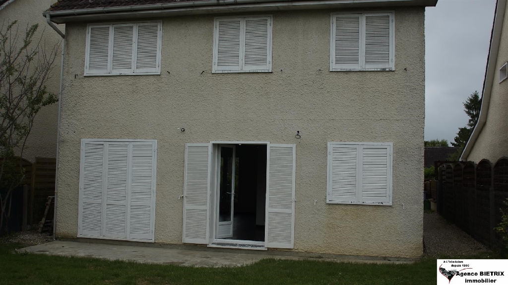 Mours: à 10 min de l'Isle-Adam, maison individuelle non mitoyenne de 125 m² utile dans quartier pavillonnaire des années 1978 en bon état comp: entrée, cuisine américaine équipée, séjour salon 35 m² donnant sur jardin, salle d'eau wc, à l'étage palier, 3 chambres, salle d'eau italienne, wc, garage, jardin 330 m².
