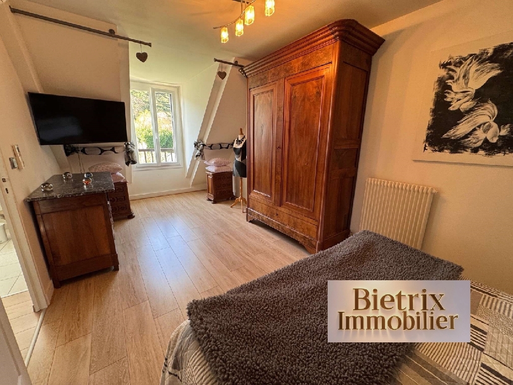 Parmain: proximité comerces et école, gare a 15 min, maison traditionnelle en excellent état de 145 m² utile, décoration moderne et raffinée, com: entrée, cuisine équipée, séjour salon avec cheminée, 2 chambres, salle de douche italienne, wc, à l'étage 3 chambres, salle de bains, wc, sous-sol total avec garage et atelier chaufferie gaz, jardin clos de 590 m².