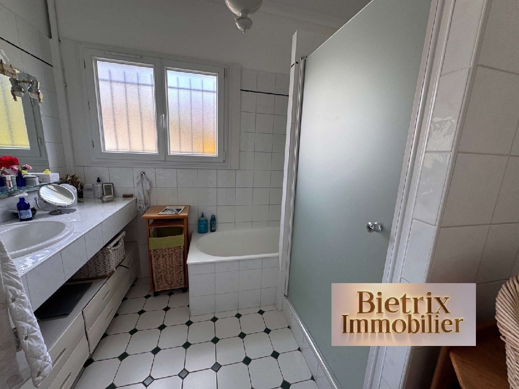 Presles: maison individuelle en bon état lumineuse, beau volume comp: un hall d'entrée 20 m², un garage pour 2 voitures, une chaufferie buanderie, une salle de jeux, une cave. Au rez-de-chaussée, une cuisine aménagée, un séjour salon avec cheminée et véranda, trois chambres, une salle de bains douche, un wc. A l'étage, trois chambres, une salle de bains, un wc, un grenier aménageable 25 m², jardin clos de 2746 m² environ. Parking devant, idéal artisan, gare école et commerces.